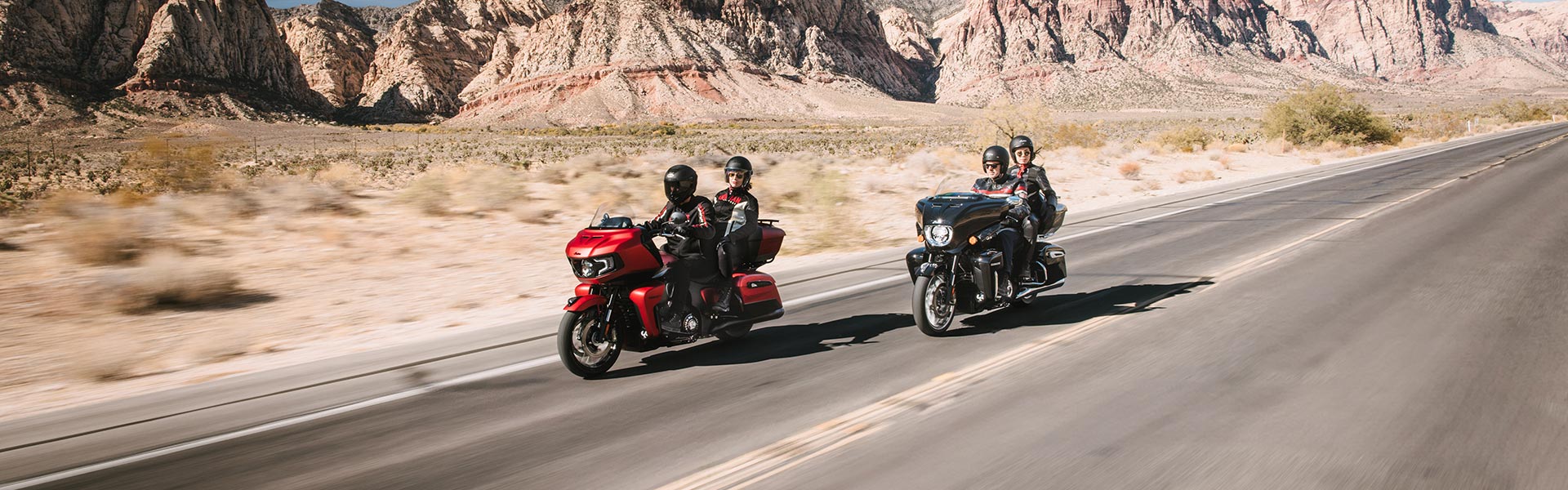 Motory PowerPlus nebo Thunderstroke V-twin, vybavené špičkovými technologiemi, poskytují silný točivý moment v nízkých otáčkách a dostatek výkonu pro předjíždění ve vyšších rychlostech.